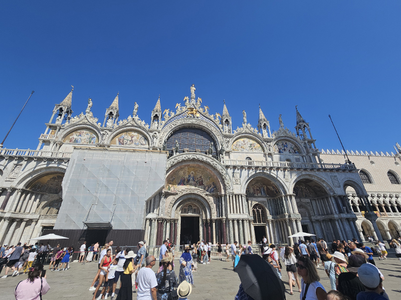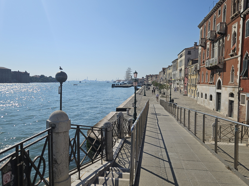 Proč je ubytování nedaleko nádraží výhodné? Jednak je u něj kryté nadzemní parkoviště dostupné za cenu 18 € za jeden celý den a hlavně je odsud neskutečně jednoduchý přejezd na ostrovní část Benátek. Vlaky z Venezia Mestre odjíždí do Venezia Santa Lucia téměř každých deset minut a jízdenku lze zakoupit na místě prostřednictvím samoobslužných kiosků za neuvěřitelných 1,5 €! Následně vás čeká desetiminutová cesta a jste na ostrovní části. Po opuštění nádražní budovy vás přivítá pohled na kostel San Simeone Piccolo a hlavně krásná slaná vůně moře. Odtud se můžete vydat prakticky kamkoliv a vždy dojdete na nějaké zajímavé místo. V tomto bodě jsme byli poháněni primárně vlastním hladem, a tak jsme se vydali vstříc restauracím. Nenechte se však zmást, ostrovní část Benátek nepůsobí natolik rozlehlým dojmem, avšak navigovat úzkými a klikatými ulicemi dokáže zabrat několikrát více času, než se může zdát. Víceméně v srdci Benátek se nachází známý renesanční most Ponte di Rialto, okolo kterého najdete mnoho restaurací s doprovodným výhledem na frekventovaný lodní kanál. Dříve byly stoly s židlemi nezabezpečeny a člověk si musel dávat pozor, aby do kanálu i s židlí nespadl. Jelikož se bavíme o přímořské lokaci, musím vám definitivně doporučit vyzkoušet nějaké ty mořské speciality! Specificky jsem si oblíbil smaženého tuňáka z Ristorante Pizzeria a velmi populární jsou i špagety s mořskými plody. Dávejte si také pozor na okolní racky, nezpůsobují naštěstí velké potíže, ale může se stát, že zaměstnanci restaurace je přijdou zahnat házením kostek ledu. Následující destinací musí být definitivně náměstí Piazza San Marco s původně románskobyzantskou Bazilikou svatého Marka, Dóžecím palácem a vyhlídkovou věží, přes kanál se na vás dále usmívá bazilika Santa Maria della Salute. V tomto bodě už na člověka může dopadat lehká únava ze všech památek a návštěv kostelů, bazilik případně muzeí. K této bazilice ale opravdu doporučím zamířit, neb ihned za ní se vám nabídne panoramatický pohled na celé Benátky ze špičky ostrova, kde se můžete usadit a chvíli relaxovat s příchozími vlnami okolních kanálů.