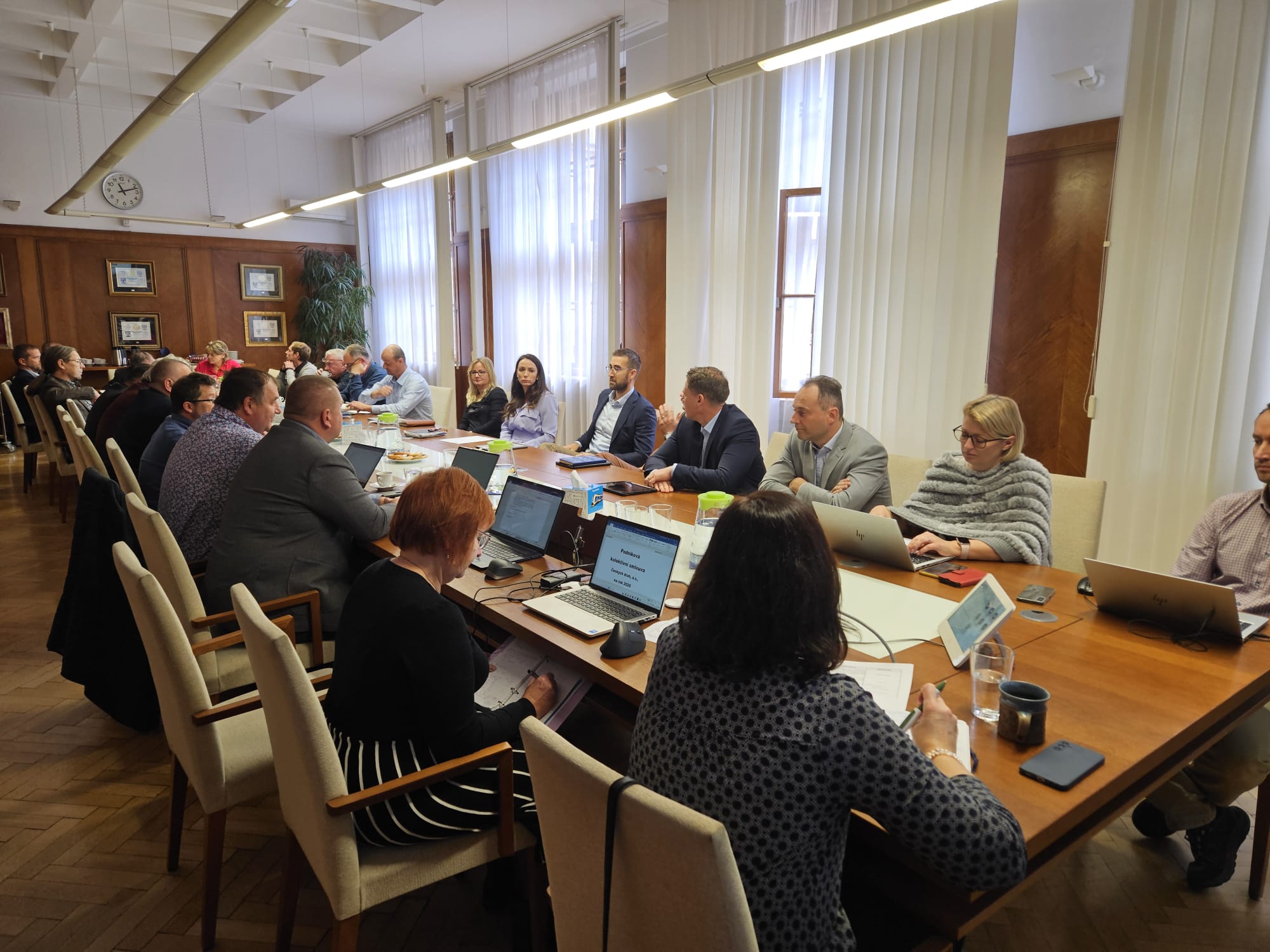V další části jednání se obě strany podrobně věnovaly jednotlivým ustanovením Podnikové kolektivní smlouvy, přičemž došlo k drobnějším úpravám textu, aby lépe reflektoval aktuální legislativu České republiky.